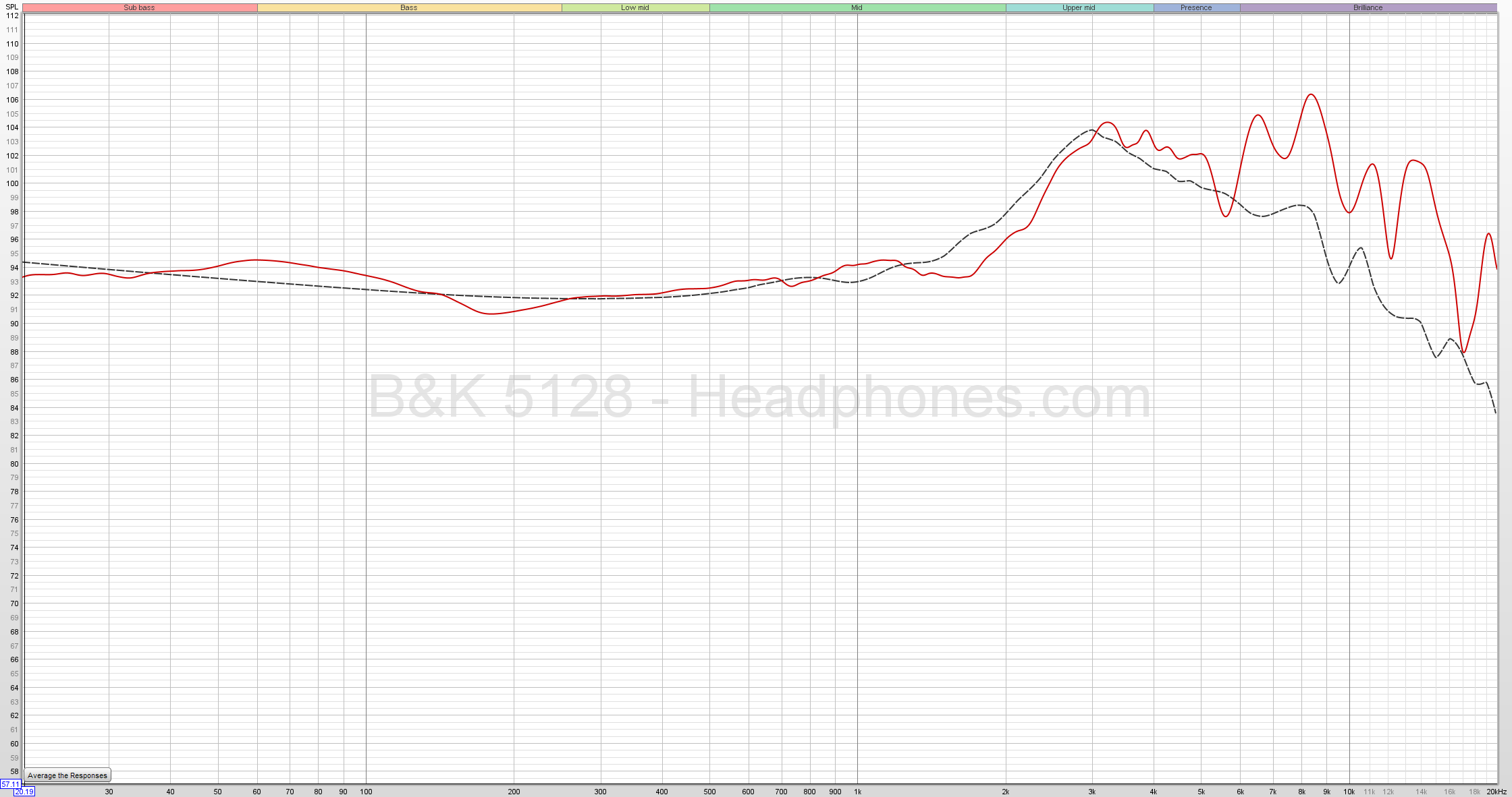 La linea nera rappresenta ciò che può essere meglio descritto come "ideale" per il suono delle cuffie. Harman Audio ha condotto studi scientifici per anni, in parte con l'obiettivo di scoprire come dovrebbero suonare le cuffie per soddisfare la maggioranza assoluta delle persone. Qui, da sinistra a destra, abbiamo prima i bassi, poi i bassi, i medi e infine gli alti che salgono un po' per la prima volta - questa gamma di frequenze è naturalmente amplificata dalla forma dell'orecchio umano, quindi la misurazione non sembra piatta a questo punto.